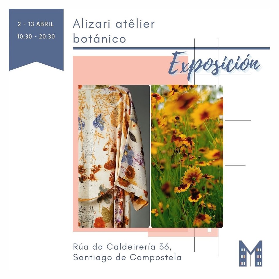 El espacio expositivo de Creativas Galegas mostrará el trabajo de Belén Merelas y su Alizari atêlier botánico, una simbiosis entre botánica y textil en la exposición «Colores Botánicos». Con tinturas naturales de diferentes fuentes biológicas, desde plantas hasta hongos, crea estampados que se pueden aplicar a distintos productos con una identidad única y eco-consciente.