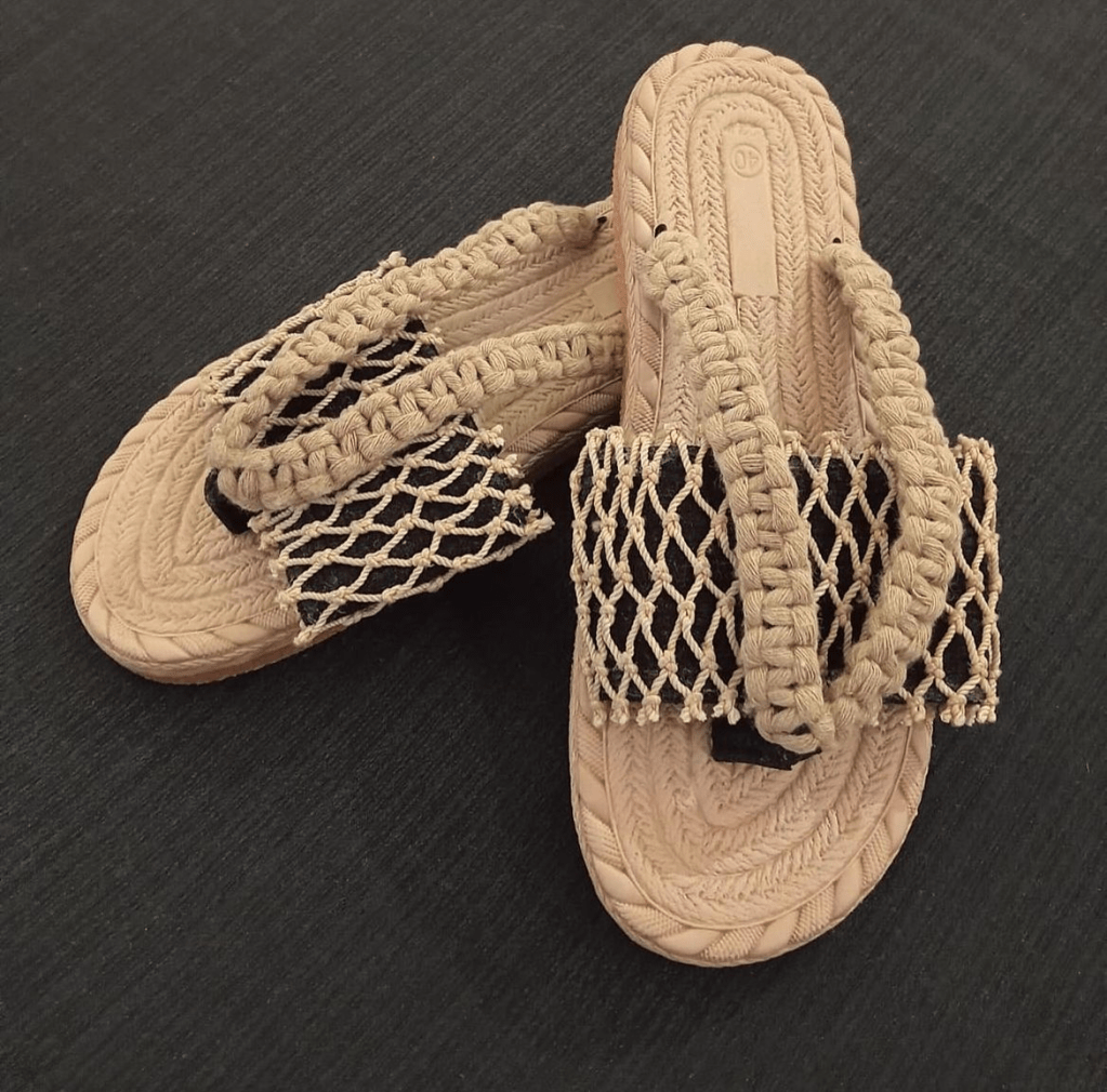 Las rederas emplean las técnicas, hilos y redes que reciclan, y con otros materiales hacen bolsos, carteras, agujas, collares, y, recientemente, también sandalias.