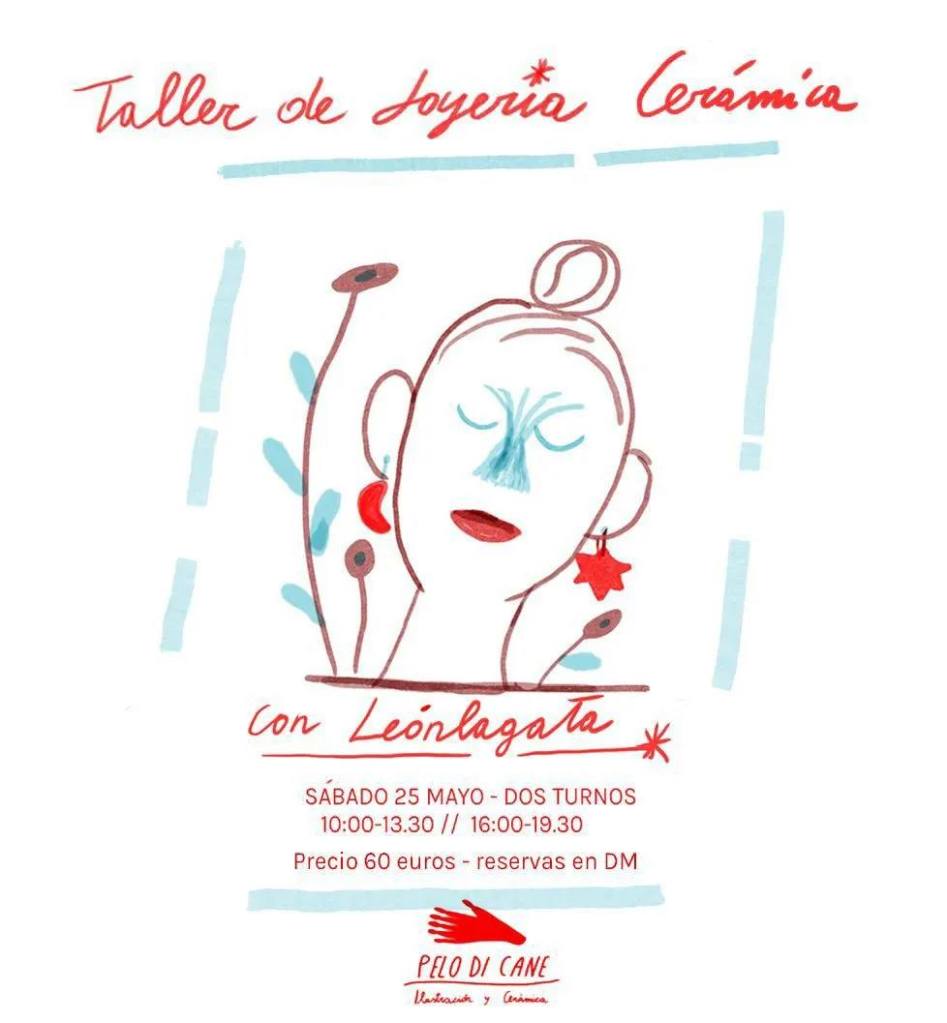 Leónlagata, de Artesanía de Galicia, realizará un taller en el estudio de la ilustradora y ceramista @pelo_di_cane_studio el sábado 25 de mayo en A Coruña. Se puede escoger entre turno de mañana o de tarde, con un máximo de 8 personas por grupo, lo que garantiza una atención personalizada.