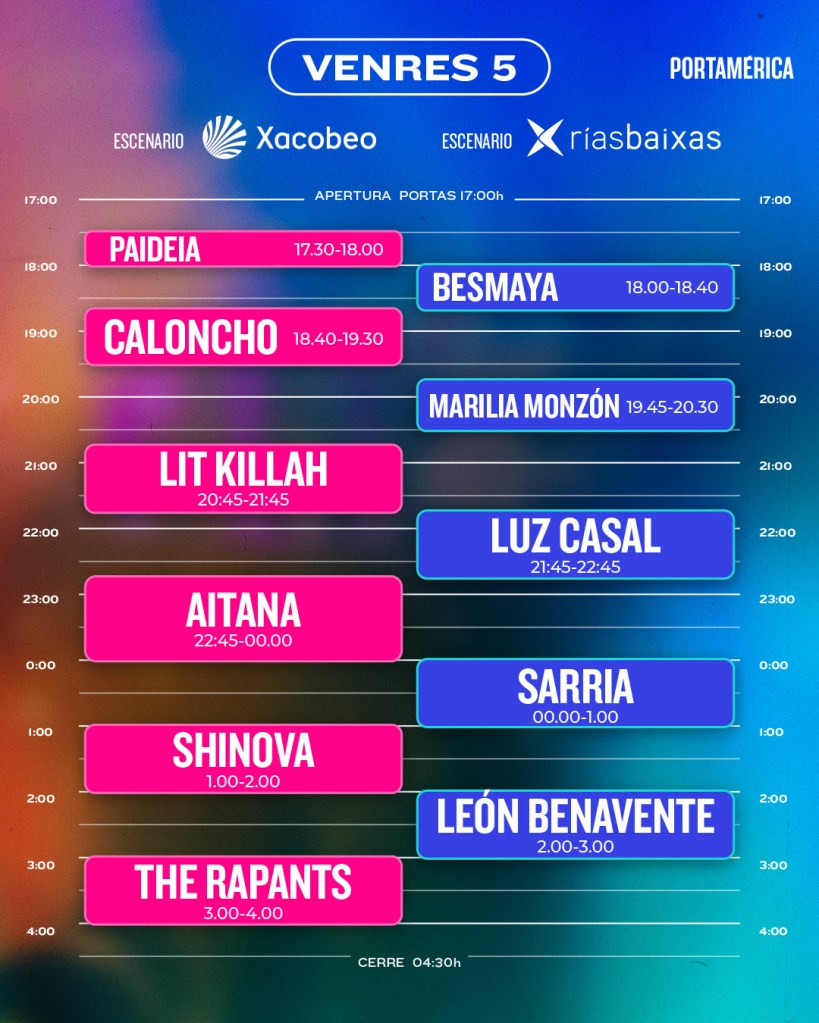 A menos de un mes de Portamérica, ya se han conocido los horarios a los que actuarán artistas como Mondra, Toquinho, Vetusta Morla o The Rapants, entre otros. Y aún hay entradas disponibles de día, así como los abonos para disfrutar de las tres jornadas de festival. Además, el festival de la Azucareira de Portas contará con su Mercado de Talentos, con propuestas de artesanía y con la programación del ShowRocking, donde participarán reputados cocineros ofreciendo bocados de autor para disfrutar a tope del festival.