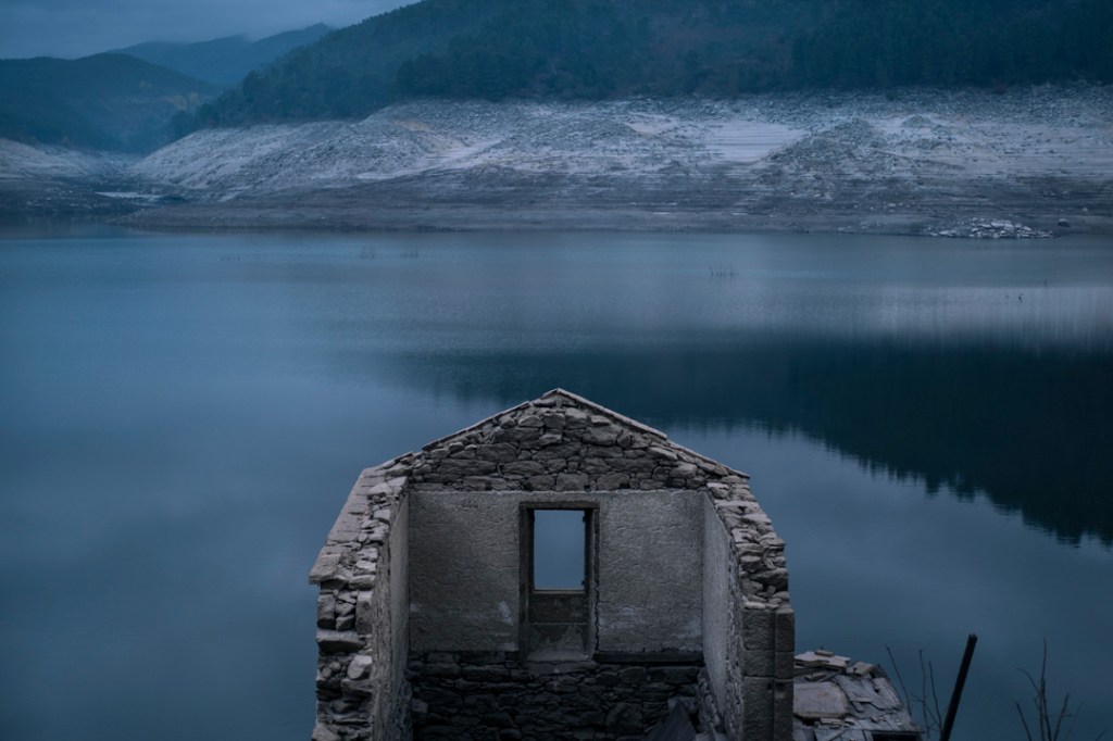 Vista de una vivienda del antiguo pueblo de Aceredo, en Lobios (Ourense) que quedó sepultado en la década de los noventa por las aguas del embalse de Lindoso y que volvió a emerger por el vaciado del embalse y la sequía. El proyecto de construcción del embalse nació de un acuerdo entre las dictaduras de Franco y Salazar y se ejecutó décadas después (1992), borró del mapa las casas de cuatro aldeas.El dictador Franco maltrató con persistencia las zonas rurales. Propició un gran éxodo e hizo insalvables los desequilibrios entre el campo y la ciudad. Su fiebre por construir pantanos que servían para abastecer de agua y electricidad a las grandes ciudades acabó con un sistema de vida. Familias como las de Aceredo se vieron obligadas a abandonar sus casas forzosamente y dejar sus negocios.