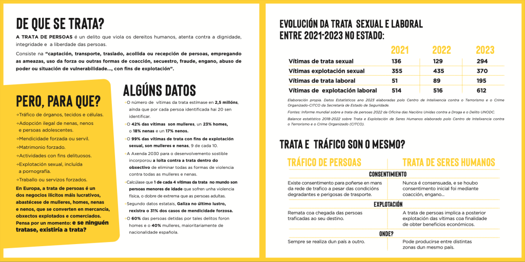 Bajo el lema ‘Se ti non tratas, non hai trata’, el Gobierno municipal se dirige directamente la aquellas personas que se lucran ilícitamente convirtiendo a mujeres, hombres, niñas y niños en mercancía, objetos explotados y comerciados. «Piensa por un momento: ¿y se nadie tratara, existiría la trata?«, se pregunta en el díptico de esta campaña de sensibilización.