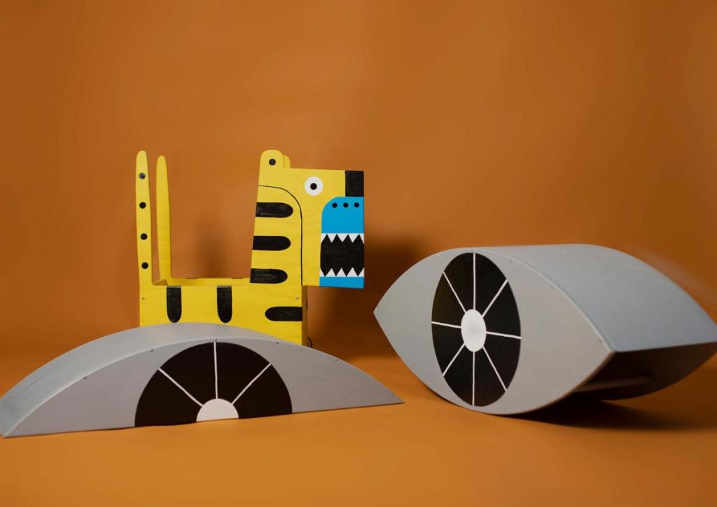 El conjunto está compuesto por dos propuestas. La primera, diseñada por la ilustradora Ruth Juan y dirigida a niños y niñas de entre 0 y 3 años, está llena de animales en los que los pequeños podrán introducirse, acostarse o incluso usar como andador. Incluye una escultura blanda con forma de serpiente sobre la que pueden gatear, un móvil cinético con figuras de animales y una serie de piezas textiles donde recostarse. La segunda instalación, obra de Raisa Álava, está dirigida a niños y niñas de 3 a 6 años e incluye una estructura modular que satisface sus necesidades de movimiento. Consta de una fachada magnética decorada con imanes que los pequeños pueden personalizar. Dentro, encontrarán una cabaña con juegos ópticos e ilustraciones de la artista.