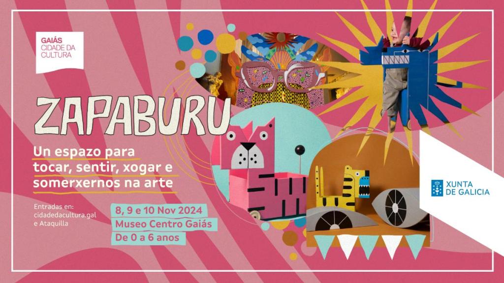 Zapaburu es un proyecto destinado a la infancia que busca la conexión emocional y la diversión a través de la experiencia artística. Se llevará a cabo los días 8, 9 y 10 de noviembre en el Museo Centro Gaiás. El viernes será de 16:00 a 20:00 horas, mientras que el sábado y domingo contará con dos turnos: de 11:00 a 14:30 horas por la mañana, y de 16:00 a 20:00 horas por la tarde. Durante los tres días, un total de 720 niños y niñas, en grupos de 20, podrán disfrutar de esta experiencia junto a un adulto responsable. Las entradas ya están disponibles en Ataquilla.com.