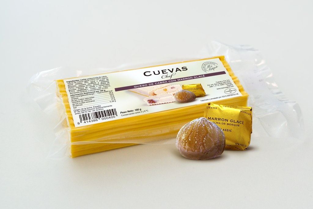 El grupo ourensano Cuevas ha incorporado a sus productos hechos con castaña un queso de cabra con Marron Glacé, el dulce que les ha hecho más conocidos. La familia Cuevas Chef nace de la voluntad de seguir buscando experiencias sensoriales y de seguir innovando con la castaña y el marron glacé. La compañía ourensana pretende facilitar el trabajo, tanto de los profesionales, como de cualquier persona en su casa aportándoles soluciones que añadieran un toque especial a los platos sin esfuerzo adicional. Siendo conscientes de que en el día a día de las cocinas es complicado invertir todo el tiempo y mimo que requiere la elaboración de cremas, purés, guarniciones o castañas peladas, hace unos años lanzaron al mercado la gama de productos Cuevas Chef, una gama de productos libres de gluten que busca poner en valor la castaña.