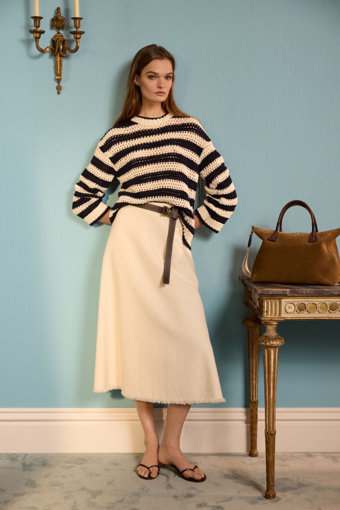 En accesorios, destaca el Duchess Bag, elaborado con los mejores cueros y un charm bañado en oro, y el Initials Insignia Soft Bucket, en cuero Baobab, terminado con un cierre bañado en oro inspirado