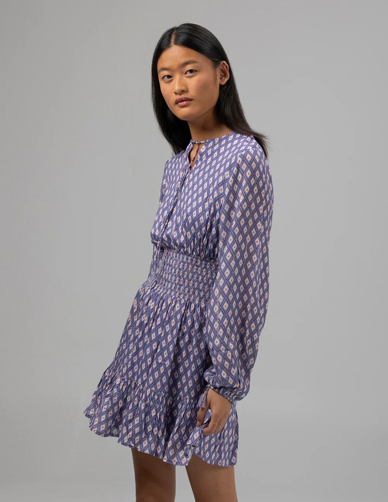 Este diseño destaca por su estampado vibrante y su corte fluido que aporta una comodidad inigualable. Los volantes en cuello y falda y las mangas abullonadas aportan un toque femenino y coqueta, mientras que la cintura algo más ajustada realza y estiliza la figura, adaptándose a diferentes estilos y ocasiones.