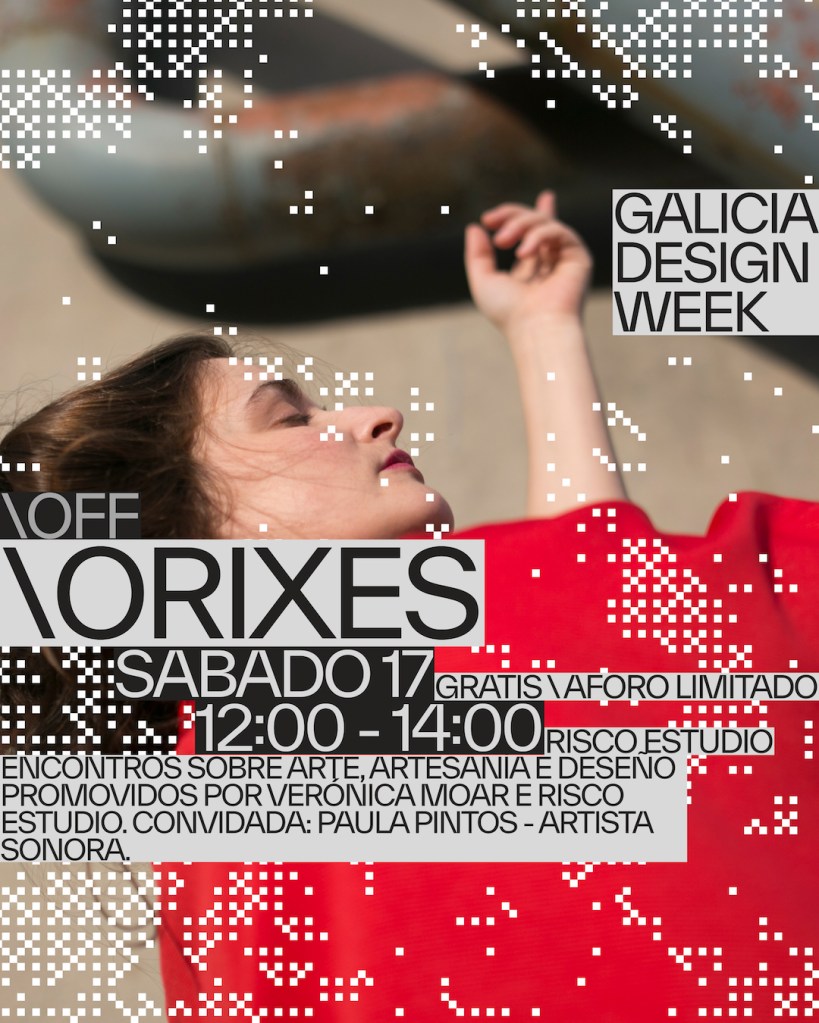 Ao día seguinte, o 17 de maio, entre as 12.00 e as 14.00 horas, a liña OFF celebrará ORIXES, un encontro de arte, artesanía e deseño impulsado polas ceramistas Verónica Moar e Risco no estudio deste último. A cita contará cunha convidada moi especial, como é a artista sonora Paula Pintos. A entrada é gratuíta, mais como espazo é limitado, recoméndase facer unha reserva previa reserva de praza a través da conta de Instagram de @orixes_encontros.