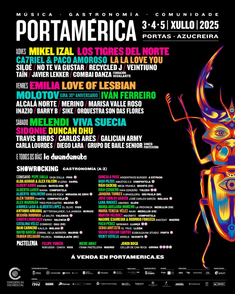 El cartel de este año reúne a grandes nombres de la escena hispana, combinando referentes internacionales como Emilia o Ca7riel & Paco Amoroso, leyendas como Los Tigres del Norte y Molotov, y favoritos del pop nacional como Melendi, Love of Lesbian, Mikel Izal, Sidonie o Duncan Dhu. Además, destacan nombres urbanos y emergentes como Recycled J, Barry B, Veintiuno, Carlos Ares o Siloé, o nombres locales y emergentes. La esencia comunitaria también estará presente con colectivos como el Grupo de Baile Senior UNED Pontevedra, Combai Danza o la Orquesta Son Das Flores, un proyecto social de integración infantil en Vigo.