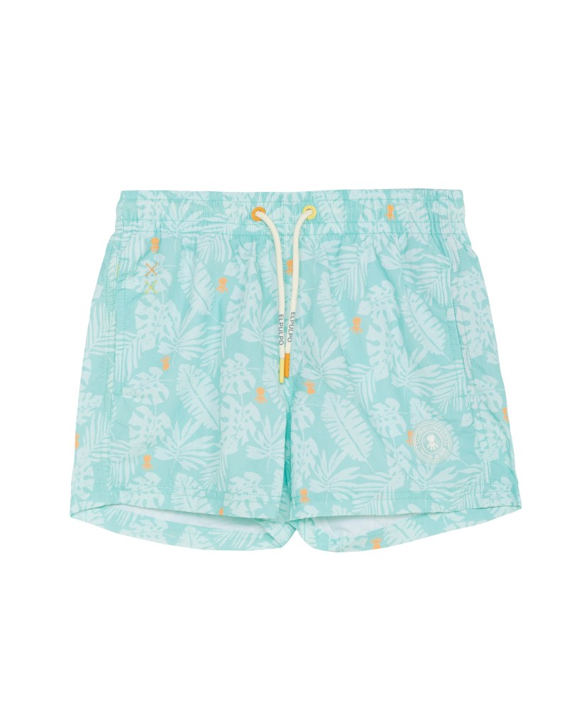 El pantalón jogger con lino en verde delavé destaca por su corte cómodo y su tejido ligero, convirtiéndose en un imprescindible para el día a día. Y para los días de playa o piscina, el bañador con estampado de siluetas de hojas en azul turquesa suma frescura y dinamismo, evocando paisajes tropicales con el sello elegante y atlántico de la marca.