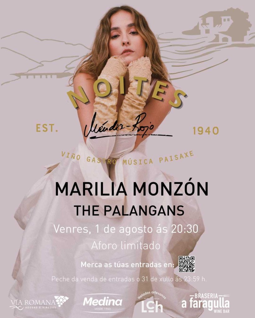 La protagonista será Marilia Monzón, una de las voces más prometedoras del panorama actual. En plena gira “Prenderé una velita”, llega con su reciente single “Acuérdate de mí”, donde mezcla emoción, cumbia y sensibilidad. Su concierto, íntimo y envolvente, tendrá como escenario natural las terrazas de viñedo colgadas sobre el Miño.